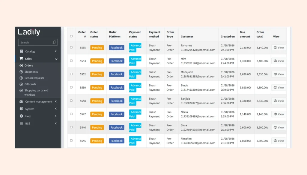 Bangladesh Software Solution designed and implemented ladily.com.bd to move the business from a Facebook dependent selling model to a structured, scalable e-commerce operation. The website was built to reflect real buying behavior in Bangladesh while introducing the process discipline required for nationwide fulfillment, pre order management, and inventory accuracy.
