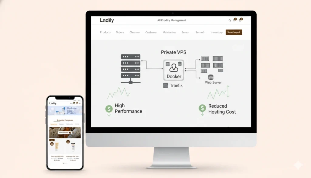 Ladily was and still is a Facebook led commerce brand, but relying on chat based order handling created operational constraints. Orders were difficult to track consistently, inventory accuracy depended on manual updates, and reporting could not reliably reflect demand, stock movement, or fulfillment status. Pre order items added complexity because availability and lead times differ from ready stock. Outside Dhaka deliveries increased the risk of cancellations and return losses. At the same time, the customer journey needed to remain fast and familiar for mobile first buyers. The client also wanted a cost efficient hosting approach that could deliver performance and reliability without the recurring expense of AWS or Azure.